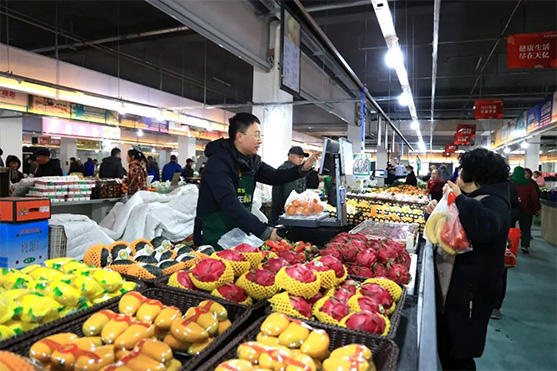 廣場內,農樂生鮮老板謝聰在水果攤位上,忙得不可開交,“攤位搬進室內后,不用風吹日曬了,環境更好了,地下鋪得瓷磚方便清潔,水果損耗比在露天擺攤減少了不少,老百姓吃著更放心。”謝聰邊打秤計價、邊說,廣場還提供了倉庫,可以存放貨品,方便又省事。